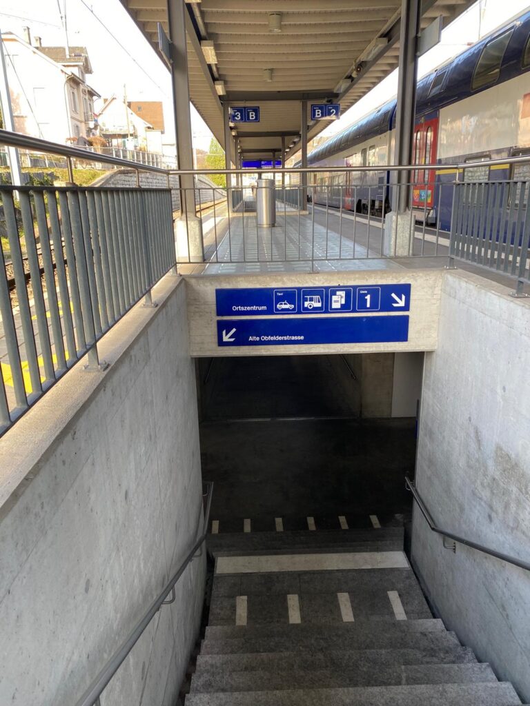 Bei der Unterführung Richtung Alte Obfelderstrasse, Treppe hoch,